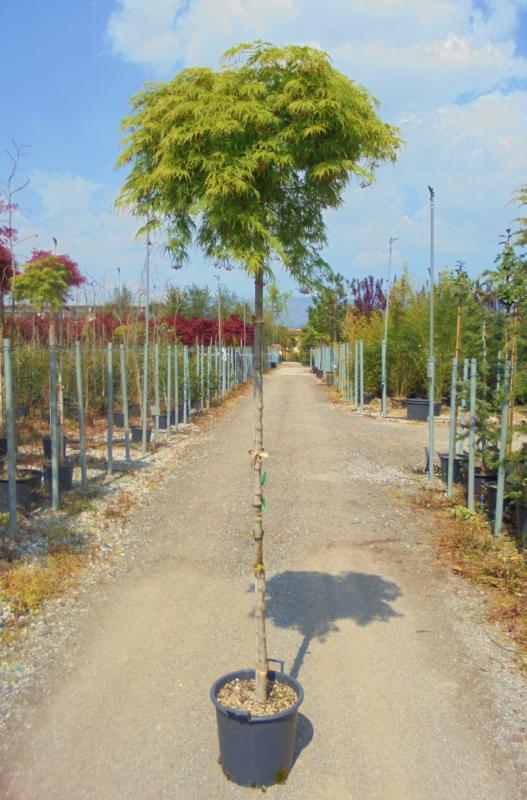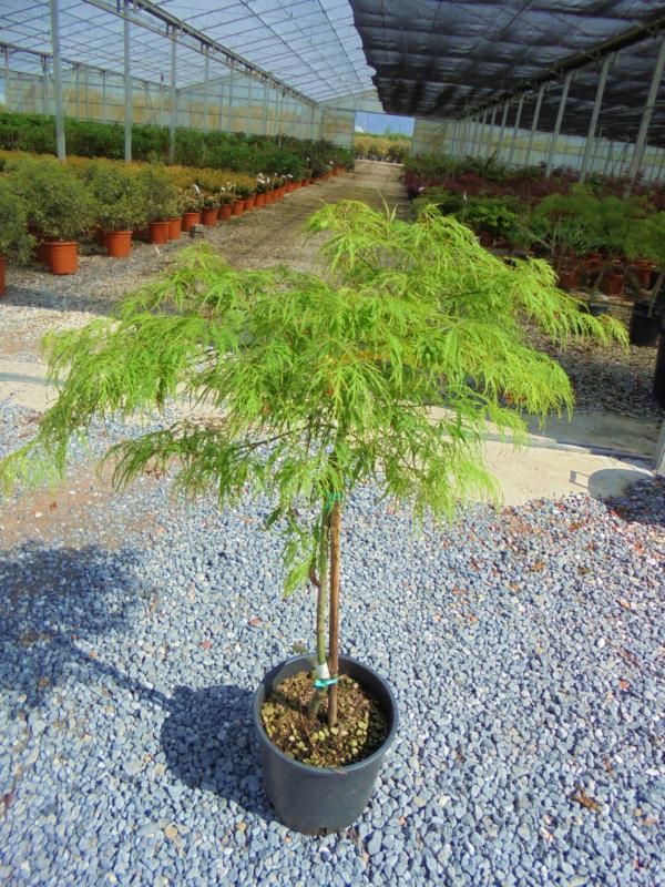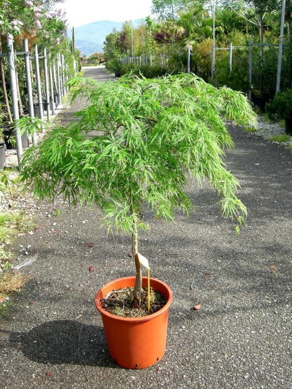 Feuilles | les lobes des feuilles, caduques, très étroits, sont incisés en segments très fins, d'aspet très léger. Magnifique coloration cuivrée, rougeatre, en automne. |
