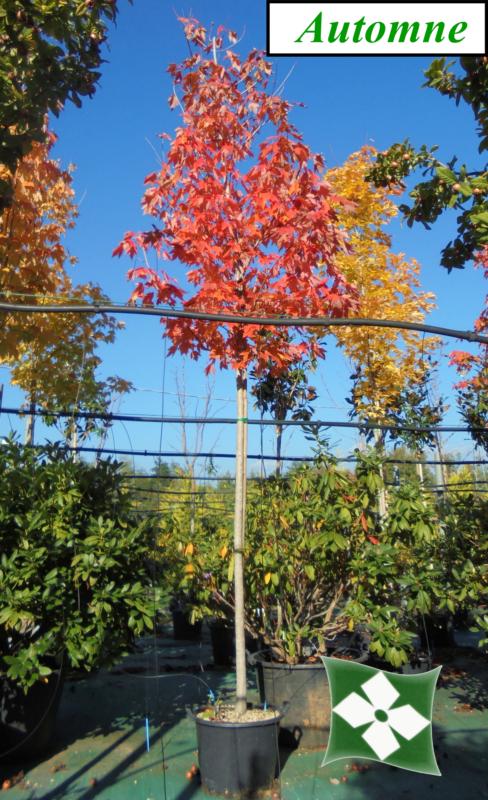 l’érable rouge est considéré comme l’arbre le plus spectaculaire quand il a revetu sa tenue d’automne; ses feuilles, vert foncé, prennent alors de riches couleurs rouges et orangées. Aussi bien arbre d’alignement que d’ornement.