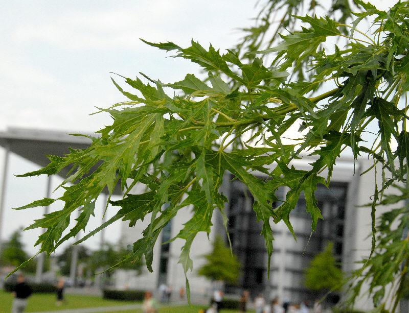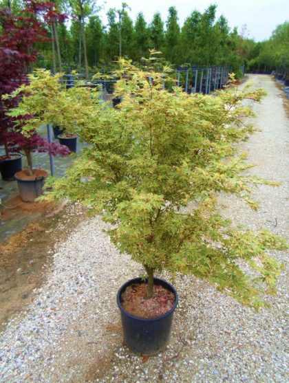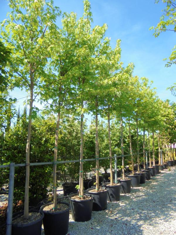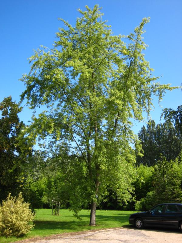 Feuillescaduques, à lobes étroits profondément découpés et dents effilées, vert clair, jaune d'or en automne