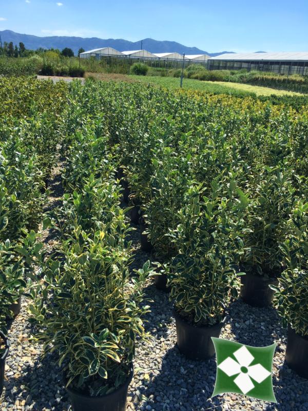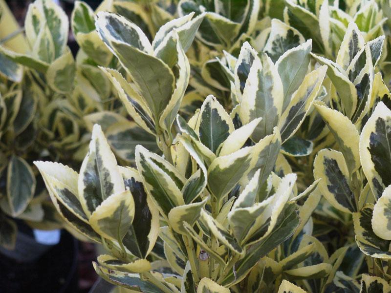 | Feuilles | les feuilles persistantes sont coriaces, étroites, elliptiques et finement dentées. La variété 'Bravo' possède un feuillage panaché. Les feuilles sont de couleur vert sombre marginées de blanc crème |