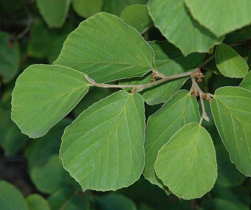 | Feuilles | feuilles ovales, caduques, mesurant jusqu'à 15 cm de long et 12 cm de large, de couleur vert sombre dessus, brunne et duveteuses dessous, virant au jaune à l'automne |