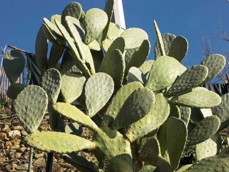 Portc'est une plante arborescente qui peut atteindre de 3 à 5 mètres de haut. Son organisation en cladodes, couramment appelés « raquettes », est particulière. Les cladodes sont des tiges modifiées de forme aplatie, de 30 à 40 cm de long sur 15 à 25 cm de large et de 1,5 à 3 cm d'épaisseur. Unis les uns aux autres, ils tendent à former des branches. Ceux de la base se lignifient pour former au-delà de la quatrième année de croissance un véritable tronc.